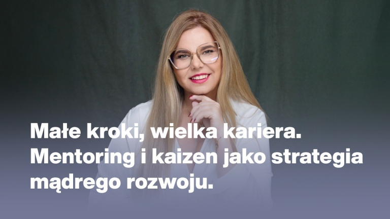 Webinar pt. „Małe kroki, wielka kariera. Mentoring i kaizen jako strategia mądrego rozwoju.” pozwoli Ci zrozumieć, jak poprzez systematyczne, codzienne usprawnienia oraz pracę z mentorem świadomie budować swoje kompetencje i pewność zawodową.